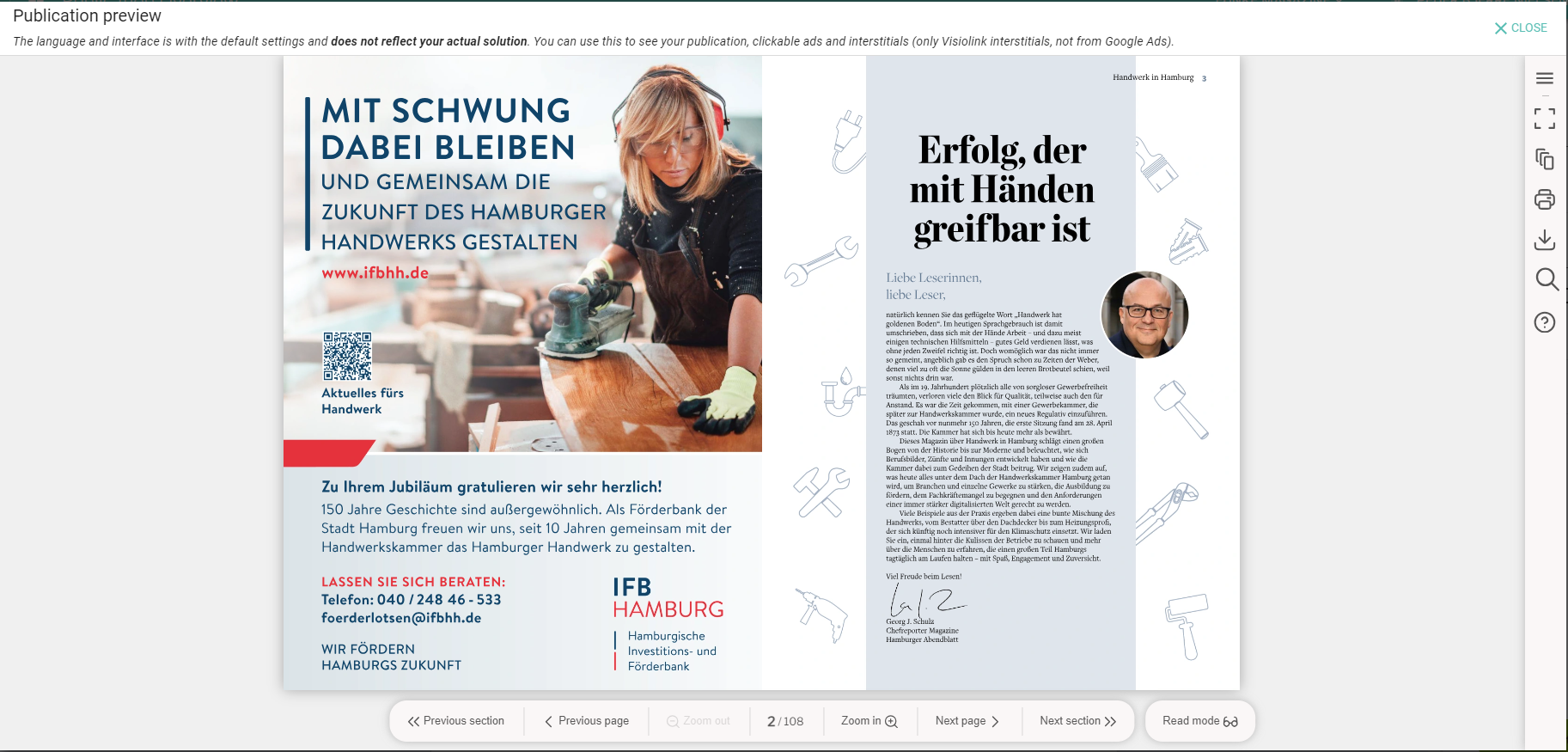 Selecting SHOW PUBLICATION will show a preview of the publication, where you can check that everything is as expected: